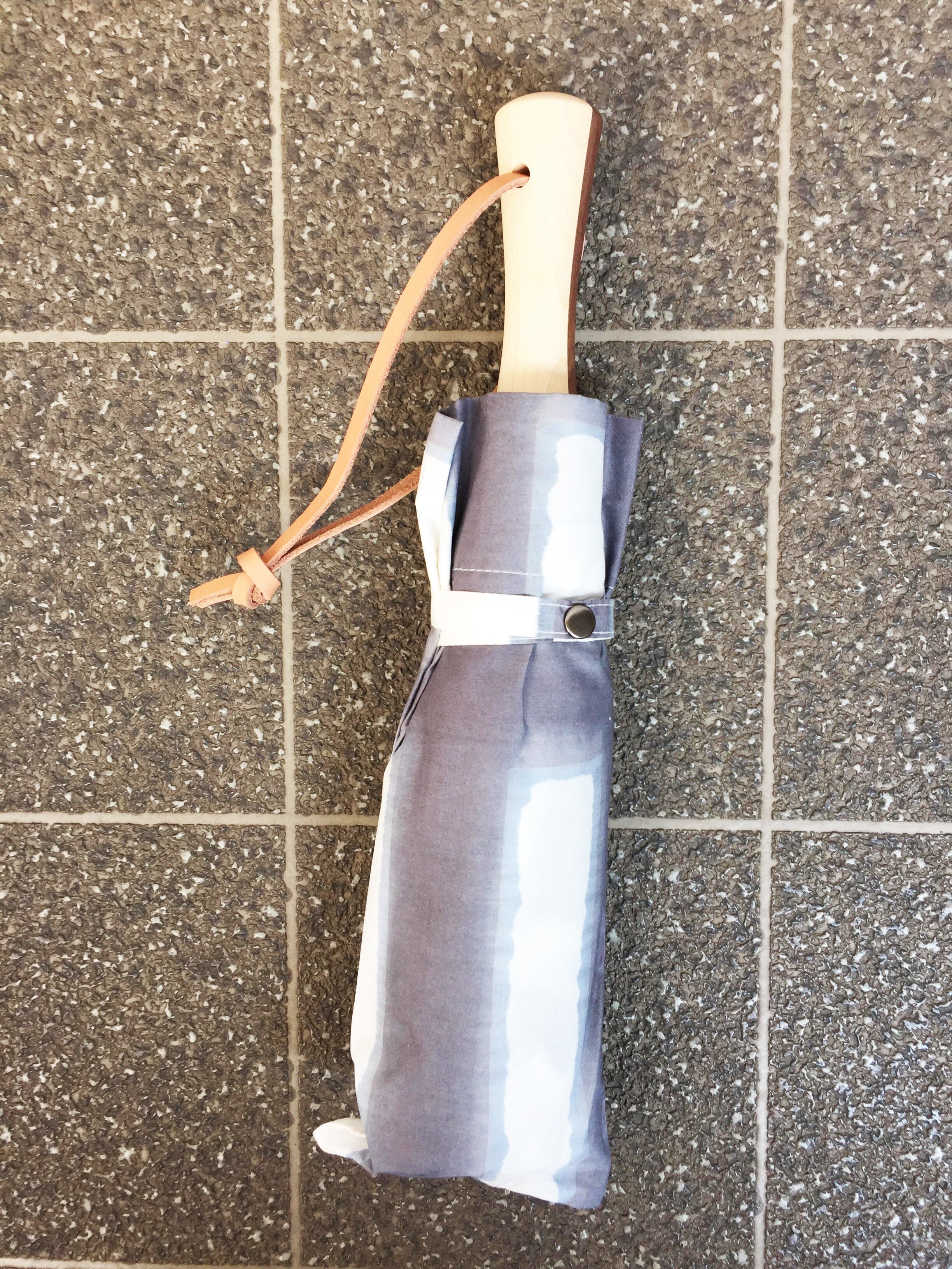 超軽量素材の骨でわずか200gのコンパクトな三つ折り傘です。